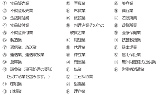 この場合の収益事業とは34業種の事業で、事業場を設け、継続して営まれているものをいいます。