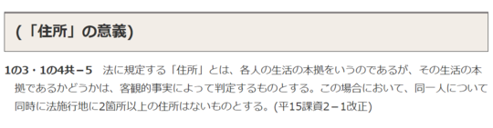 住所の判定は、職業や家族の住所、財産の所在地などを総合的に勘案して判定します。