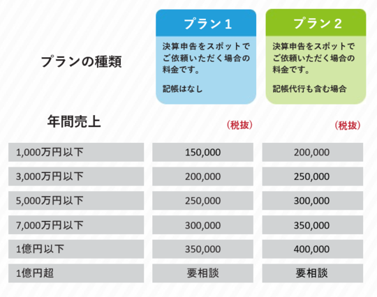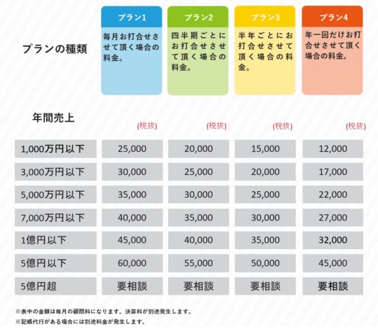 幣事務所の料金プランを元に、料金、サービス内容をご提案させていただきます。