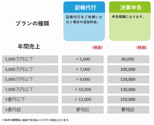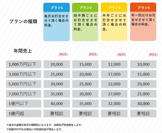幣事務所の料金プランを元に、料金、サービス内容をご提案させていただきます。